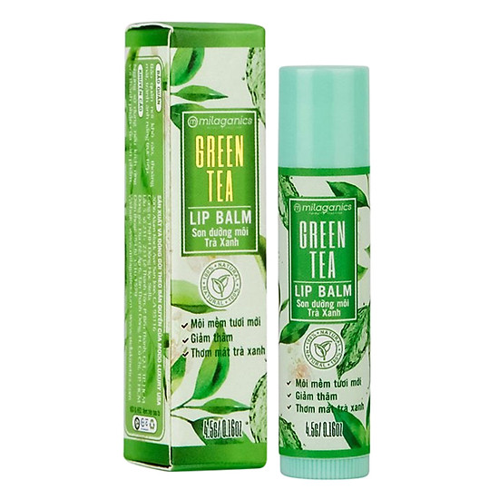Son Trà Xanh Thiên Nhiên Dưỡng Môi, Giảm Thâm Milaganics là dòng son sưỡng môi với tinh chất trà xanh thiên nhiên.